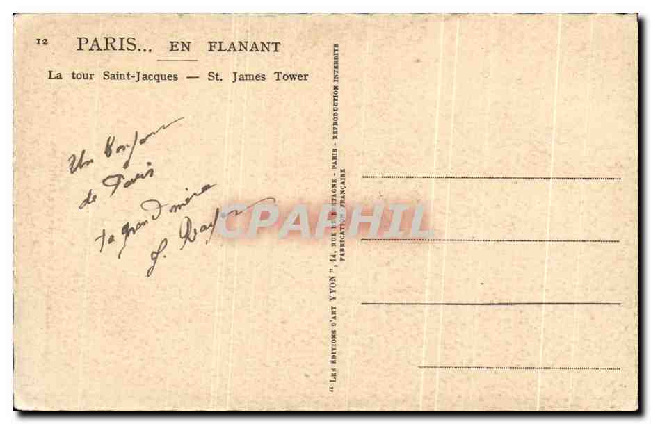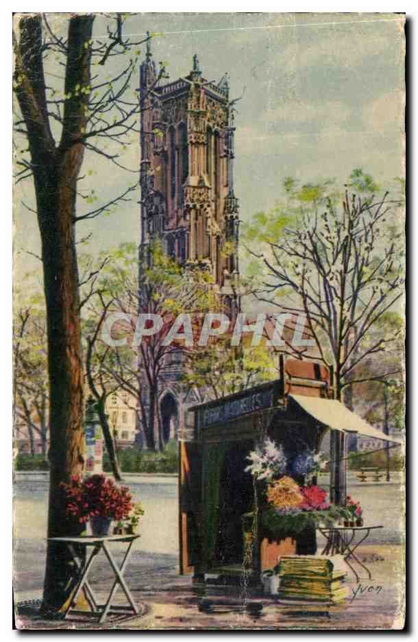 Old Postcard Paris Strolling the Tour Saint Jacques