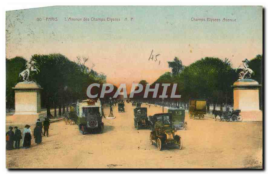 Old Postcard Paris's Champs Elysees