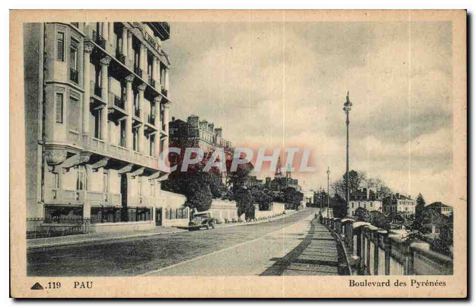 Old Postcard Pau Boulevard des Pyrenees