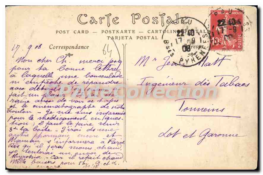 Old Postcard Pau Gate Lower City