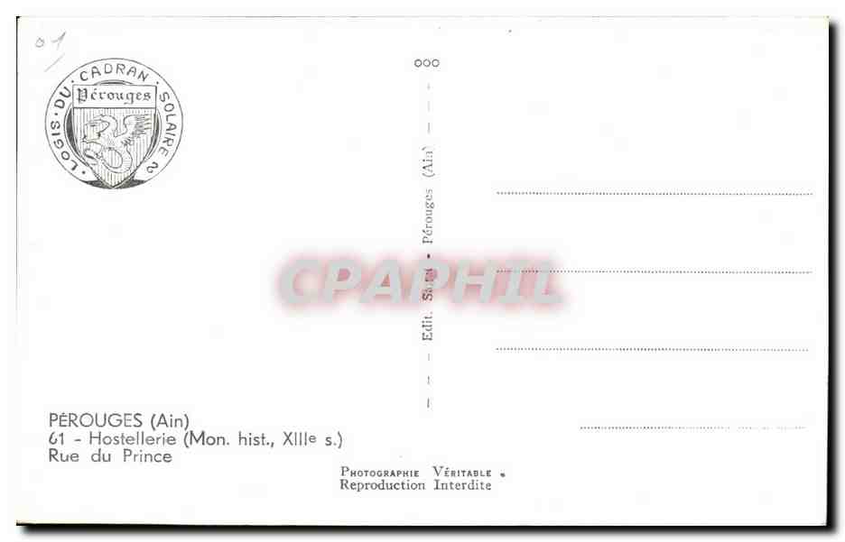 Old Postcard Perouges Ain Hotellerie du Prince Street