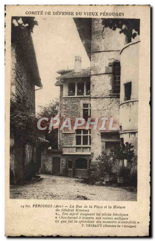 Old Postcard Perouges Street from the square and the home of General Messimy