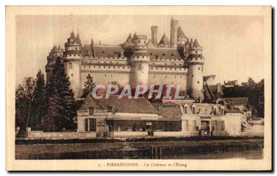 Old Postcard Pierrefonds Castle and The Pond Restaurant