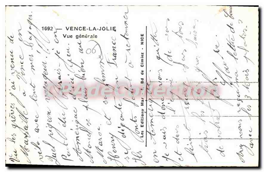 Old Postcard Pretty Vence the general view