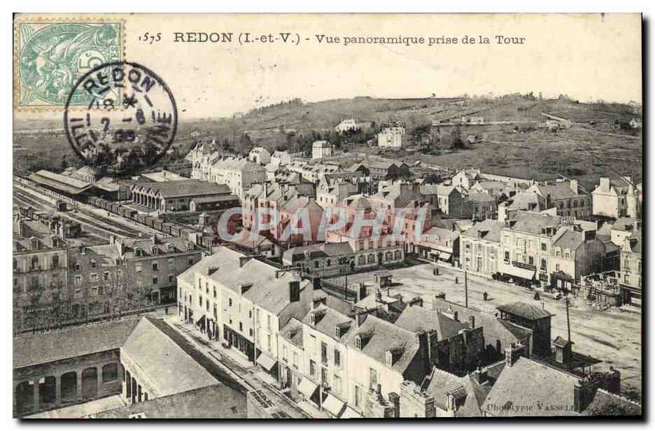 Old Postcard Redon Panoramic View from the Tower Train Station