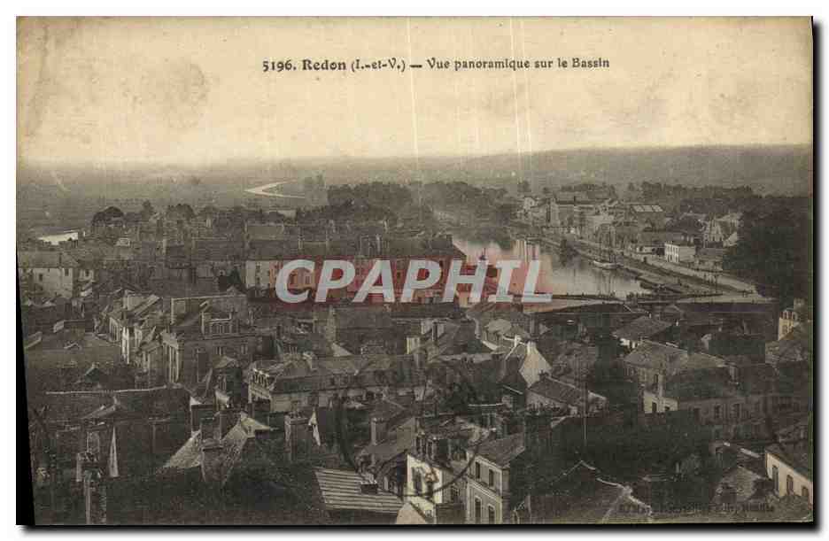 Old Postcard Redon panoramic view on the Basin
