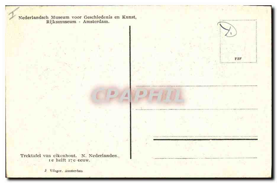 Old Postcard Rijksmuseum Amsterdam Trektafel