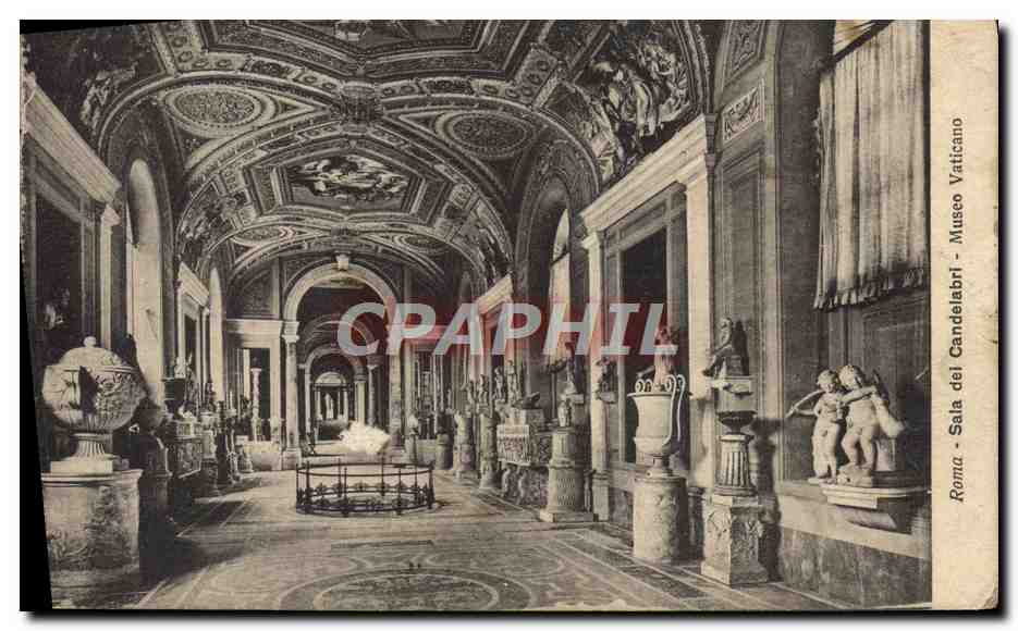 Old Postcard Roma Sala del Museo Vaticano Candelabri