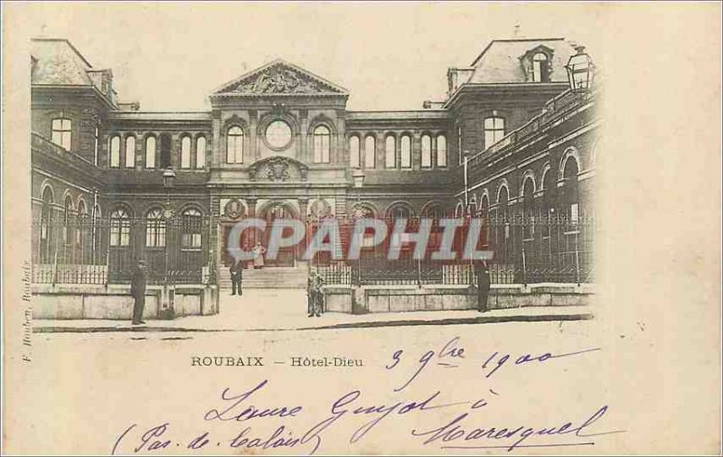 Old Postcard Roubaix Hotel Dieu (map 1900)