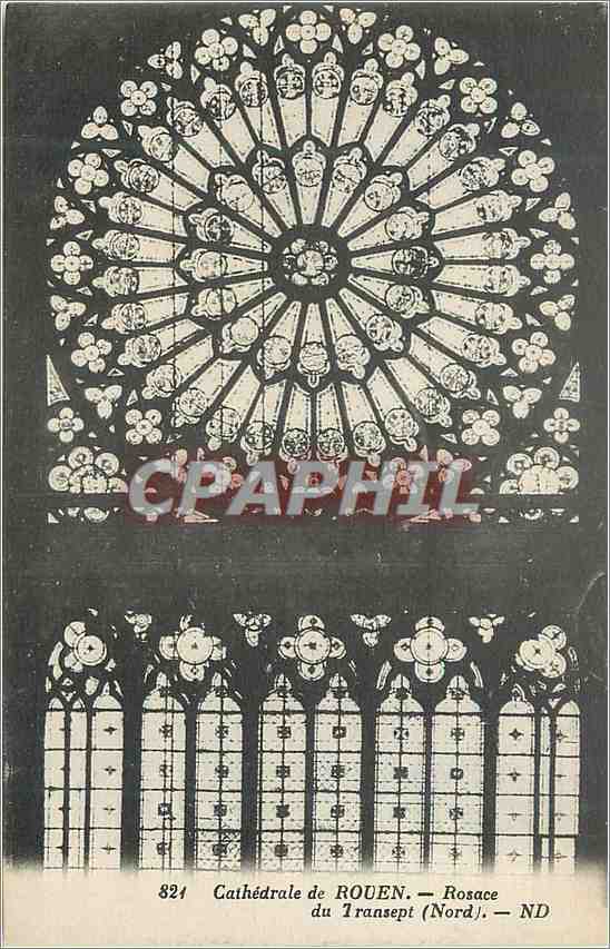 Old Postcard Rouen Cathedral Rosette transept (North)