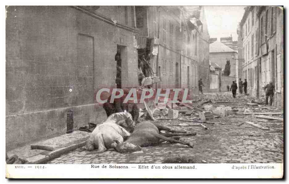 Old Postcard Rue De Soissons Effect German Obus