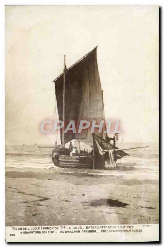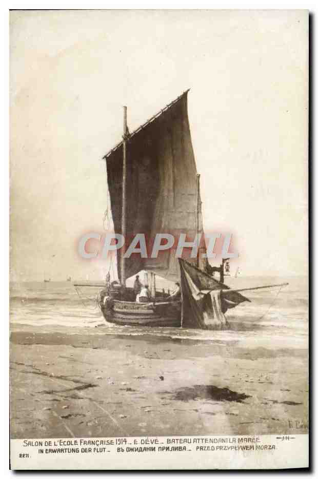 Old Postcard Salon 1914 E Deve boat waiting for the tide