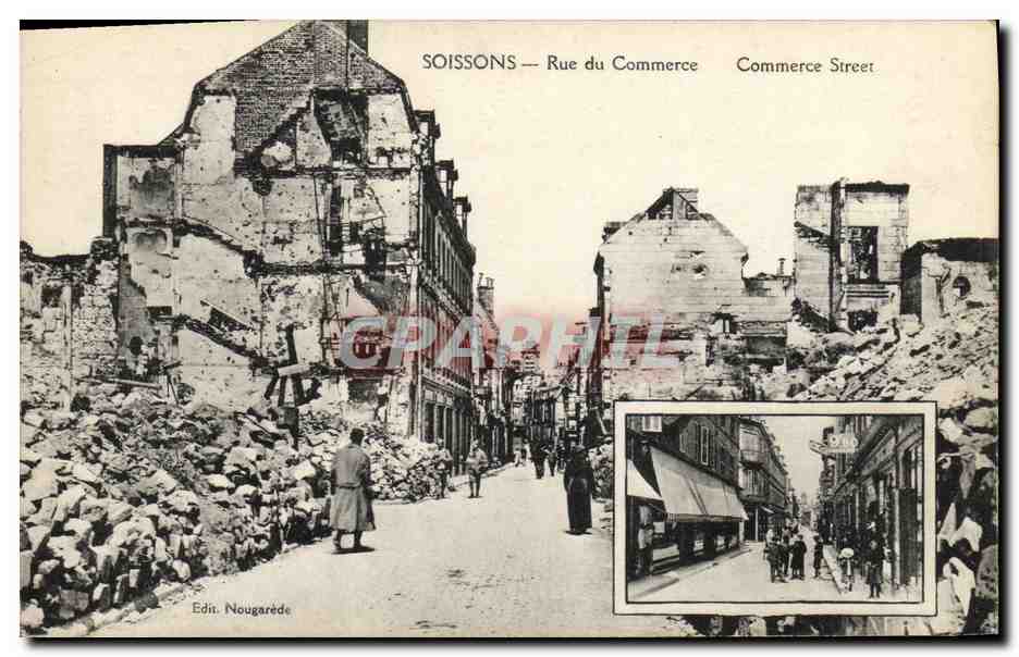 Old Postcard Soissons Rue du Commerce Army