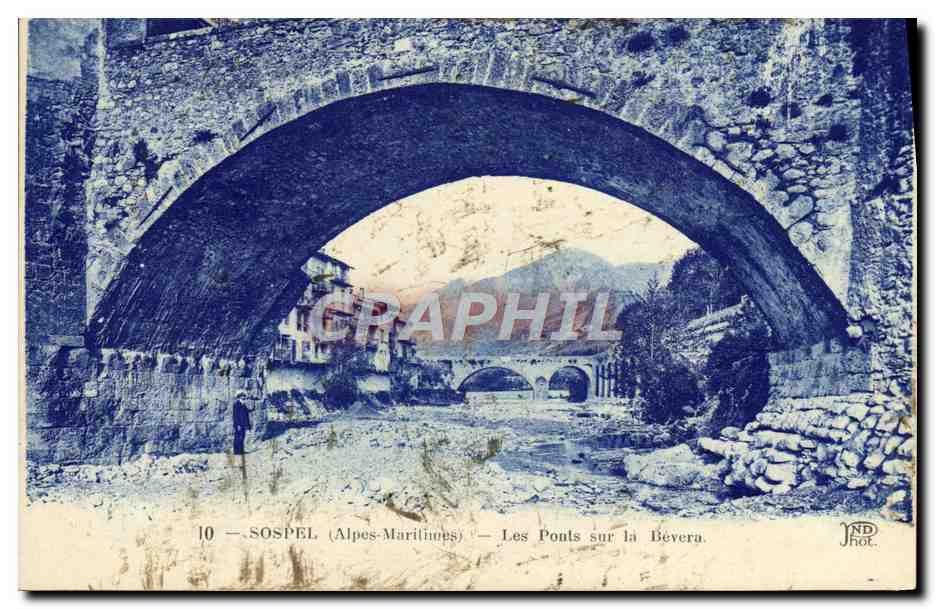 Old Postcard Sospel Bridges on Bevera