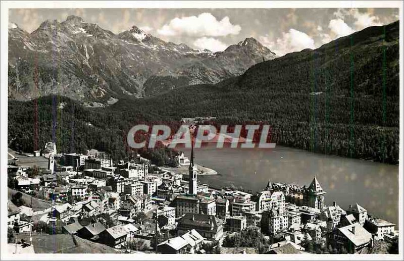 Old Postcard St Moritz Dorf mit Piz Languard u Albris