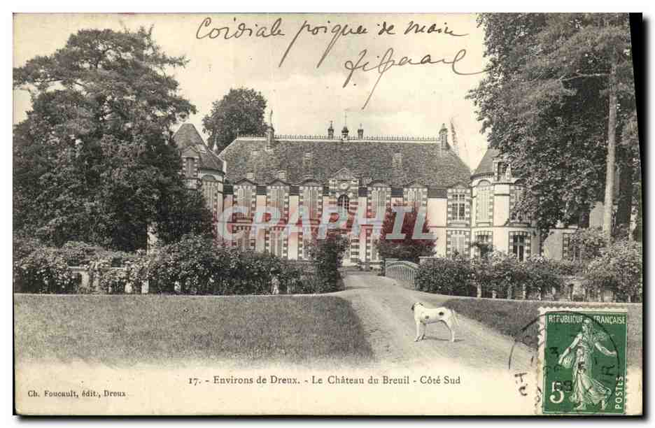 Old Postcard surroundings Dreux Le Chateau du Breuil Cote Sud