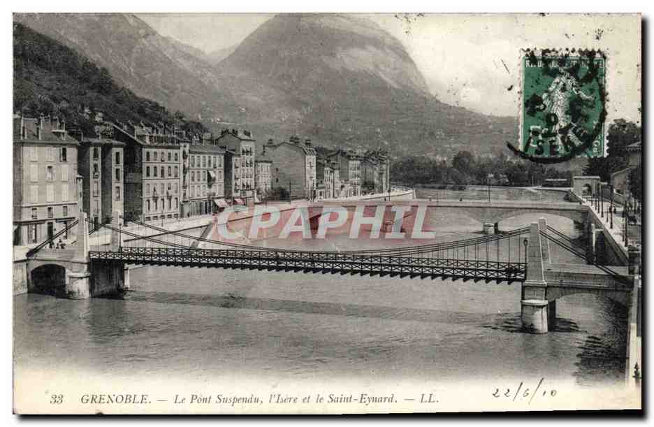 Old Postcard Suspension Bridge l & # 39Isere and Saint Eynard Grenoble