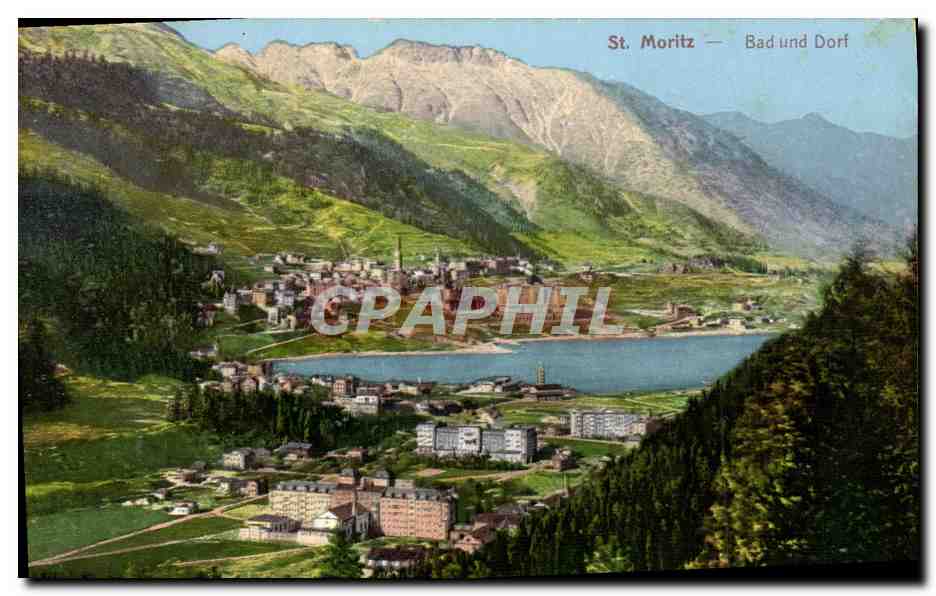 Old Postcard Switzerland St Moritz Bad und Dorf