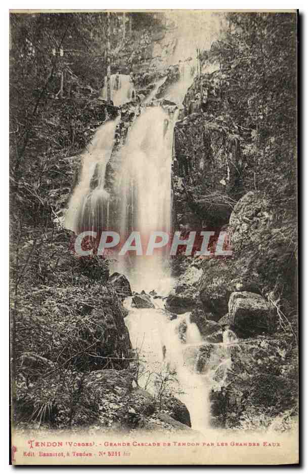 Old Postcard Tendon Great waterfall in the great waters