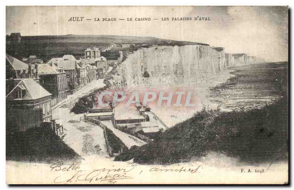 Old Postcard The Ault Beach Casino Cliffs D Aval