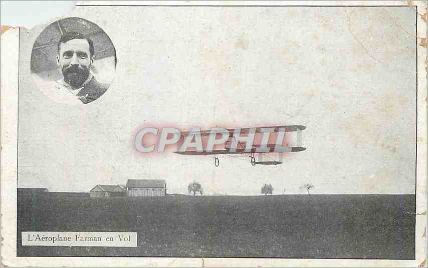 Old Postcard the Farman Airplane in Flight
