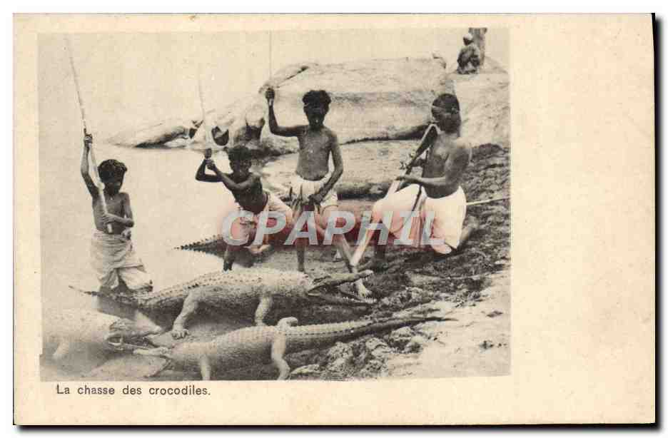 Old Postcard The hunt for crocodiles