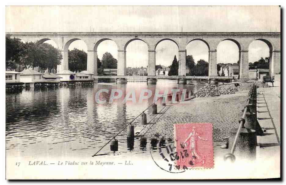 Old Postcard The Viaduct Laval Mayenne