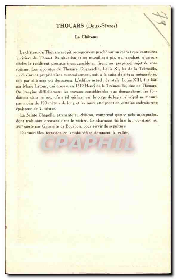 Old Postcard Thouars Chateau