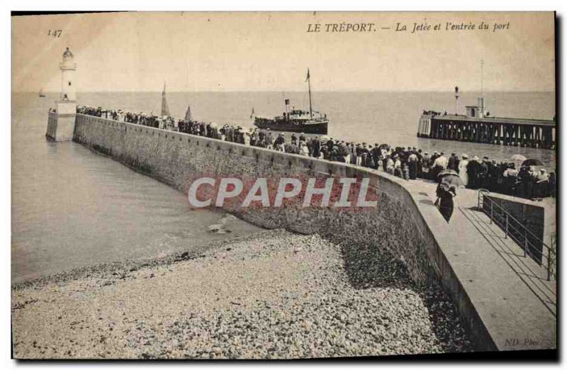 Old Postcard Treport La Jetee and & # 39entree Boat Harbor Lighthouse