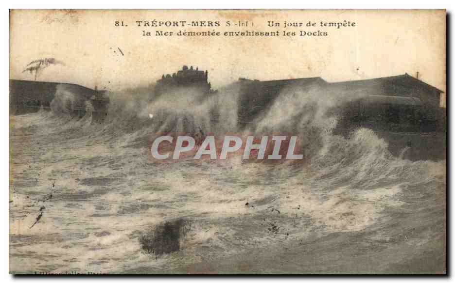 Old Postcard Treport Mers A storm Day Sea disassembled