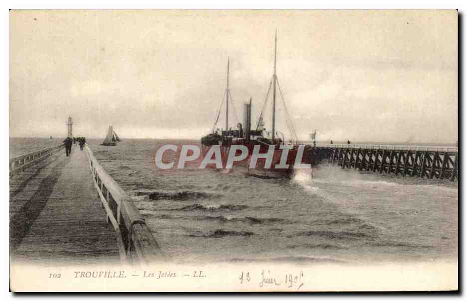 Old Postcard Trouville boat jetties