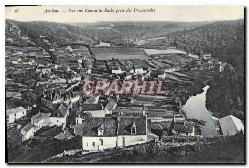 Old Postcard View Avallon Cousin rock socket Des Promenades