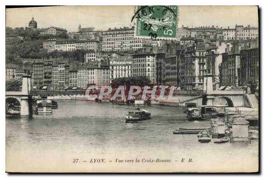 Old Postcard View towards Lyon Croix Rousse
