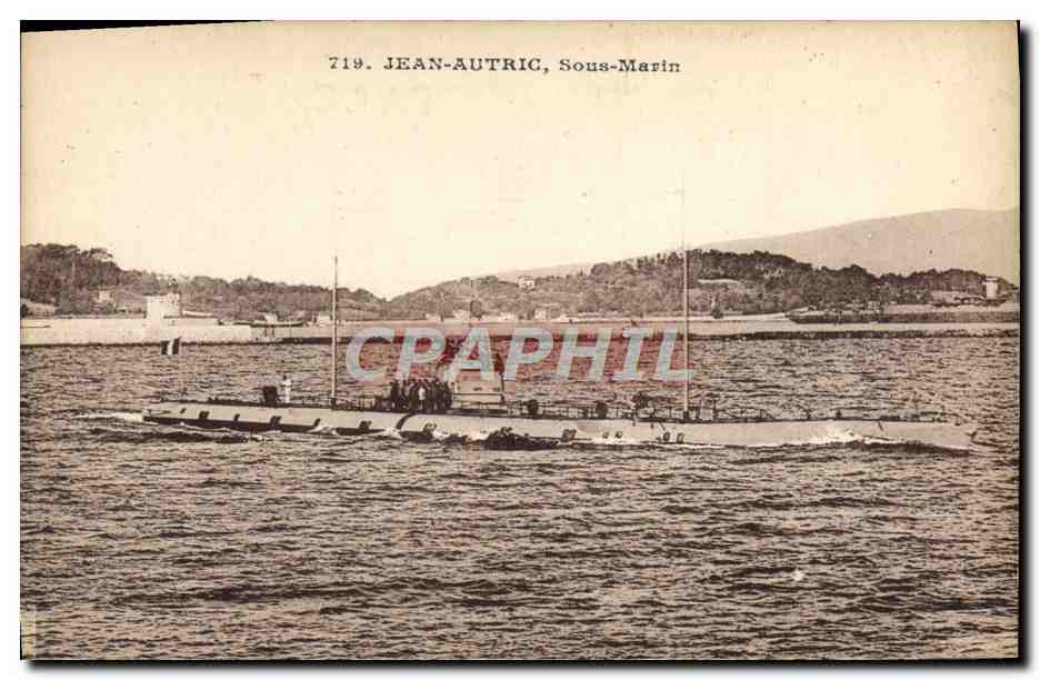 Old Postcard warship Jean Autric Submarine