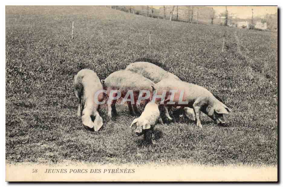 Old Postcard Young pigs Pyrenees Pigs Pigs