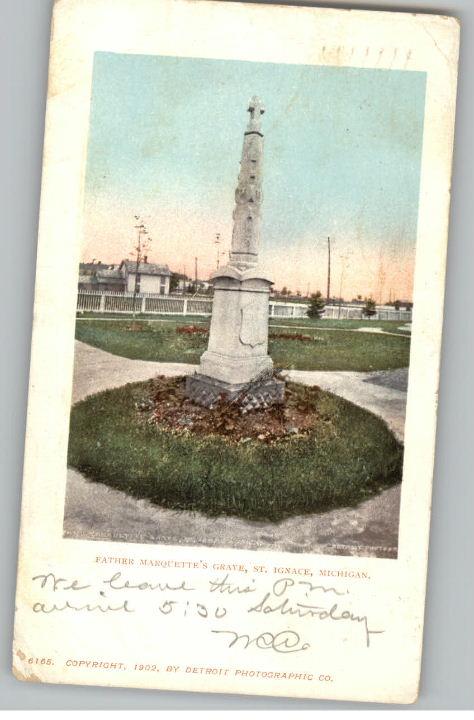 Old Postcard~Father Marquette Grave~St Ignace,Michigan