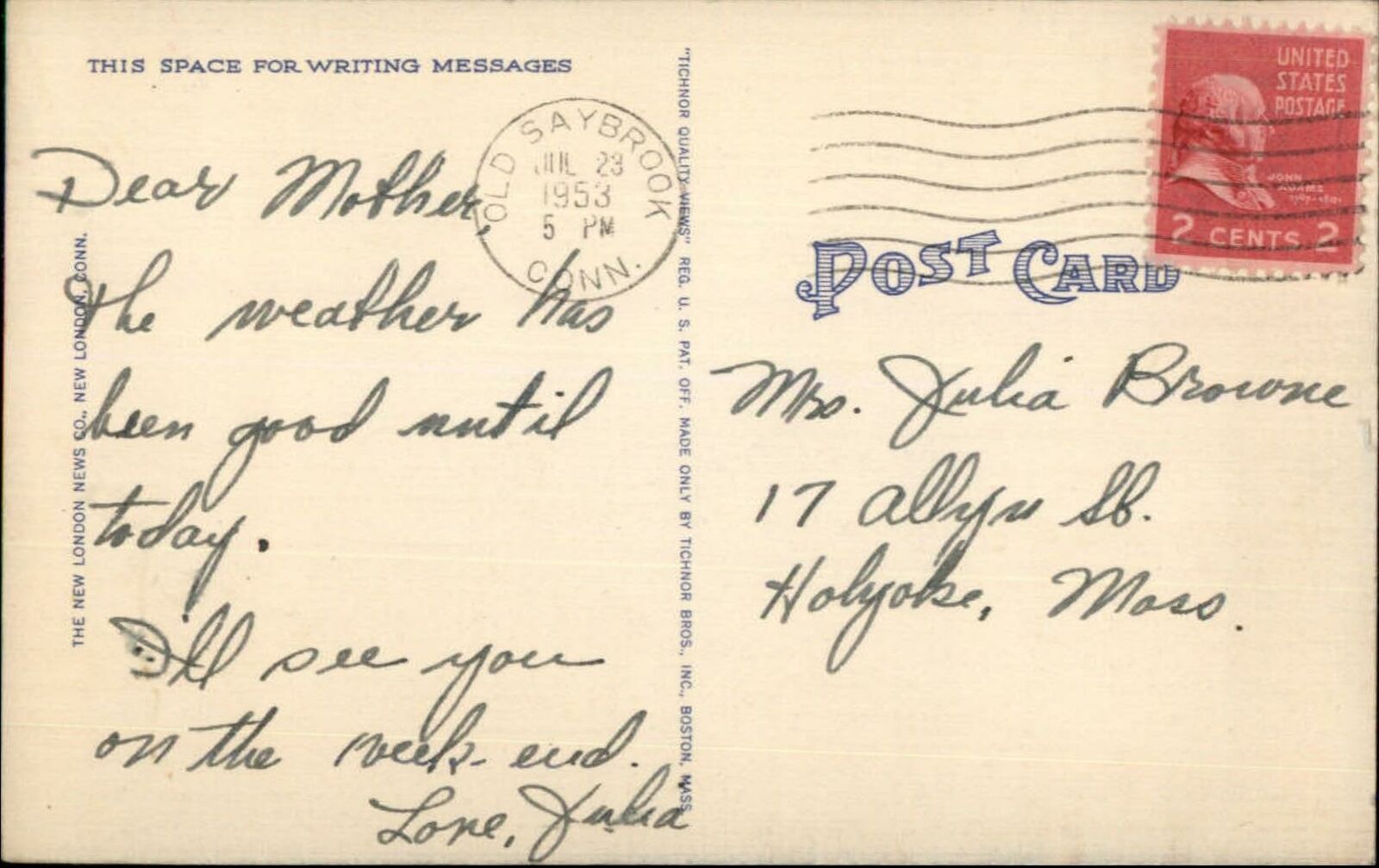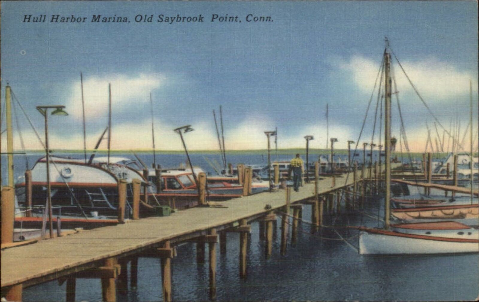 Old Saybrook Point CT Hull Harbor Marina Linen Postcard