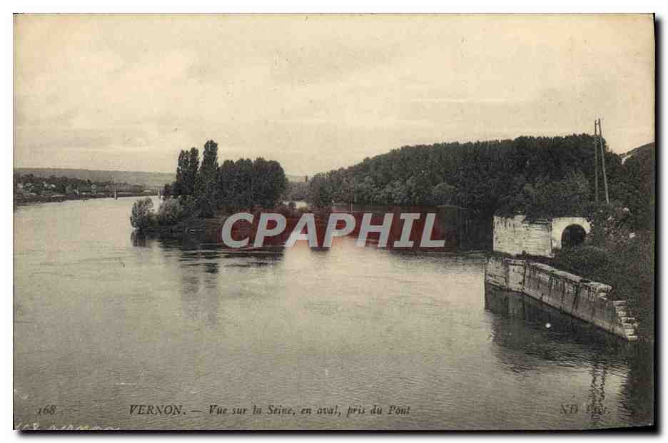 Old Vernon Postcard View On The Seine downstream fallen bridge