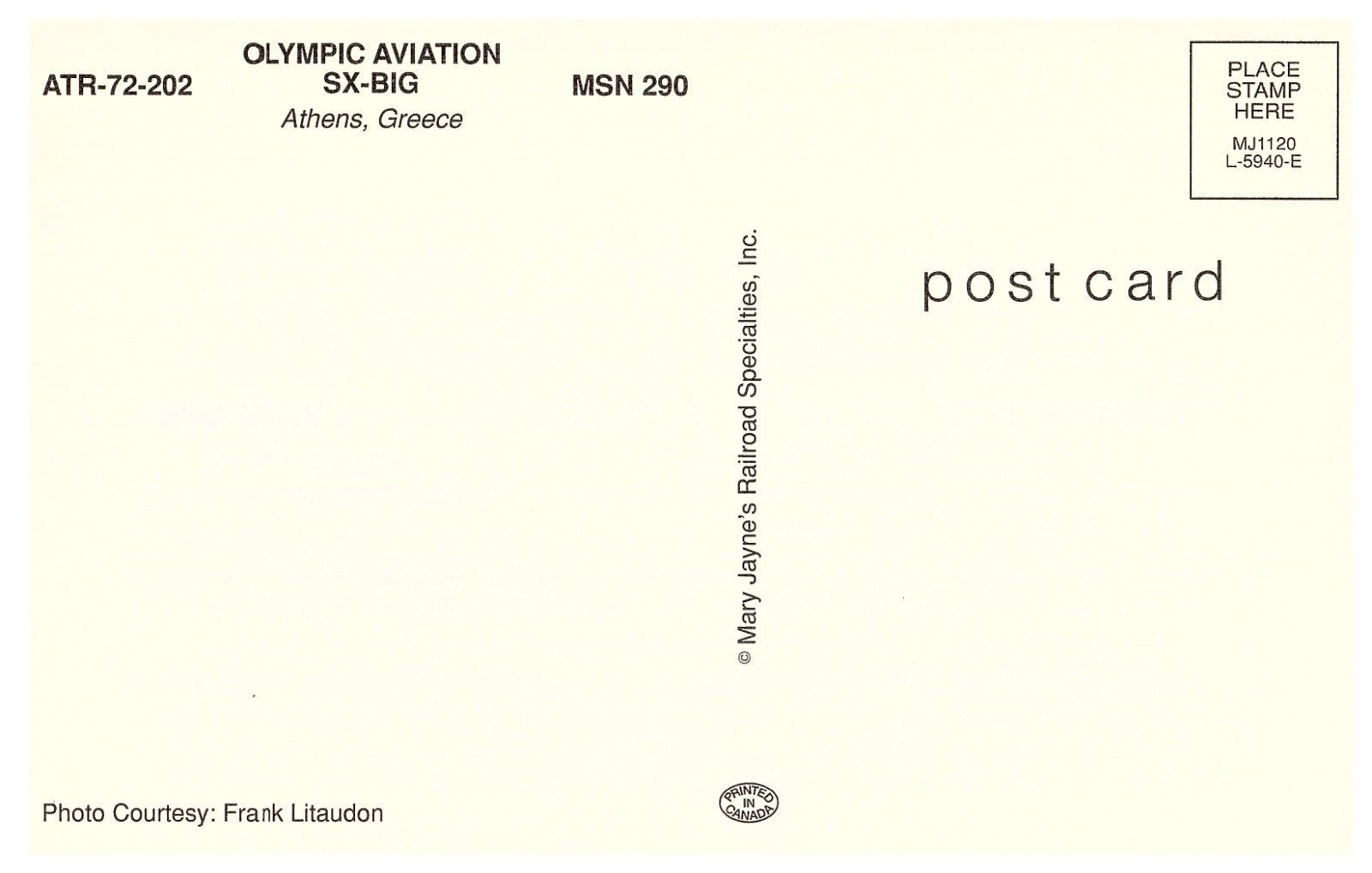 Condition: Pre-owned. May have mild edgewear, typical. Stored well. Some discoloration on the back, typical. This Olympic Aviation SC-BIG Athens Greece Airplane Postcard is a must-have for any collector or enthusia ... Read More
