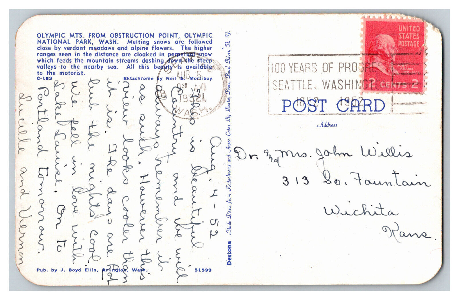 Condition: Mailed, Showing Wear From Handling. Writing On The Back. Top Left Corner Wear. Reasonable Offers Always Considered. Olympic Mts. Obstruction Point Olympic National Park Washington c1952 Vintage Standard ... Read More