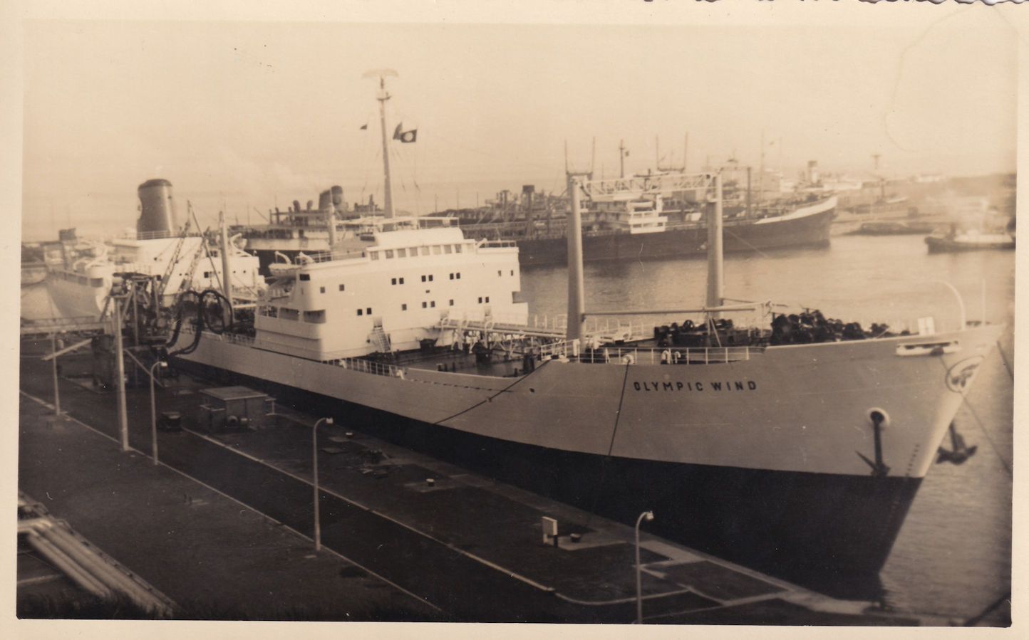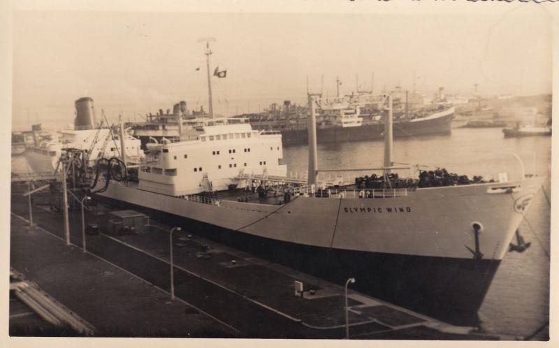 ts21-1 A vintage 1957 real photo plain back postcard from when this Olympic Wind ship had just been constructed and is a famous Liberian vessel - there is some marks on reverse from album removal just to sides and only reverse - otherwise this is outstanding condition and original real photo souvenir from 70 years ago