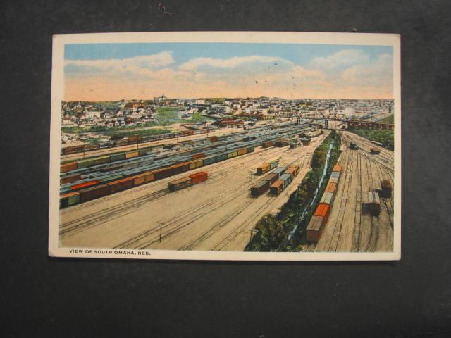 OMAHA NE South View TRAIN STOCKYARDS c1920 Postcard