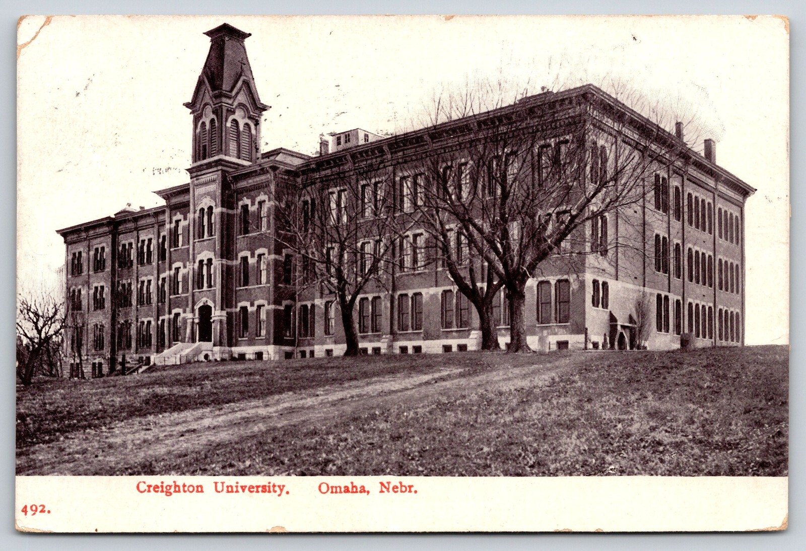 Omaha Nebraska~Creighton University Main Bldg~Exterior View~Cupola~1908 Postcard