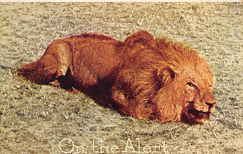 On The Alert Lions Postcard unused,
