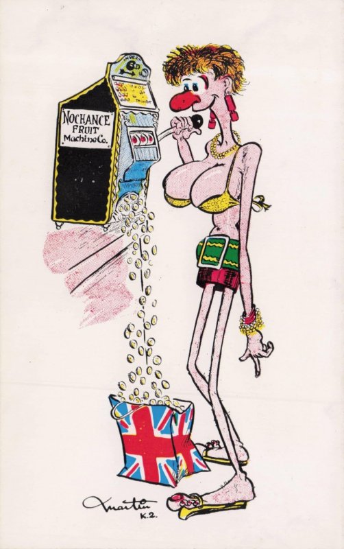 One Armed Bandit Sexy Lady Fruit Machine Arcade Player 1970s Postcard