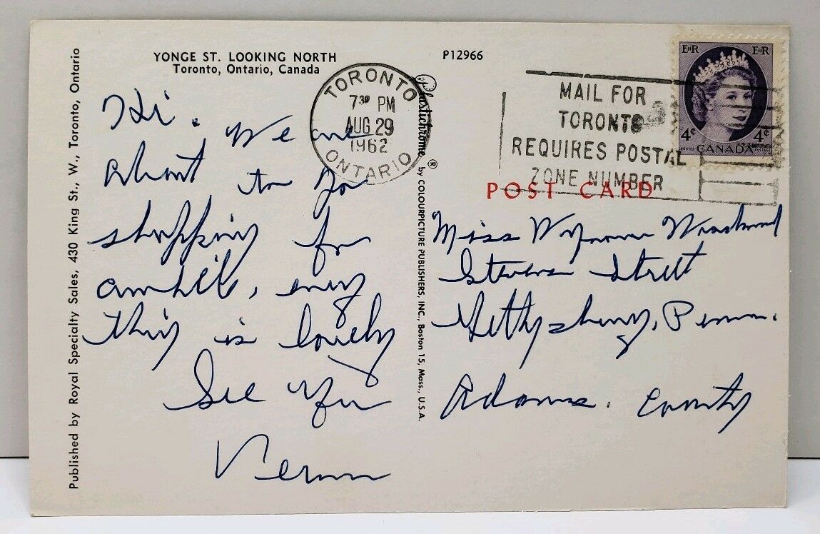Ontario Canada Yonge St Looking North Postcard D2