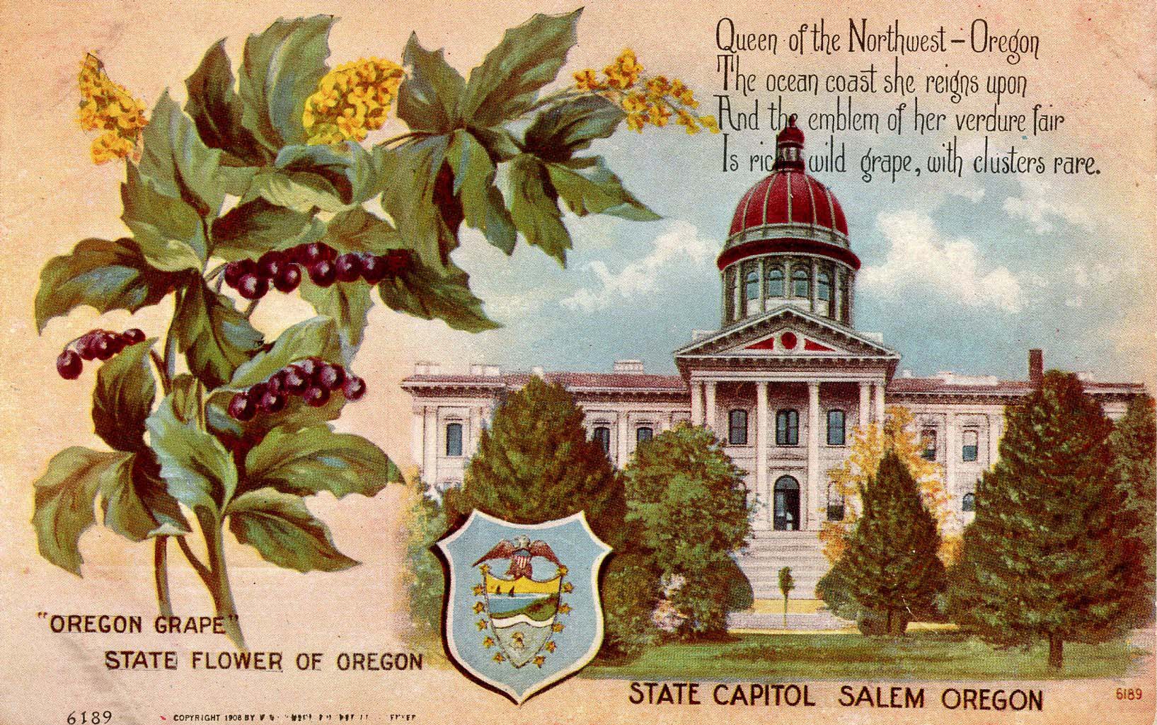 OR - State Flower & Capitol. Oregon Grape & Salem