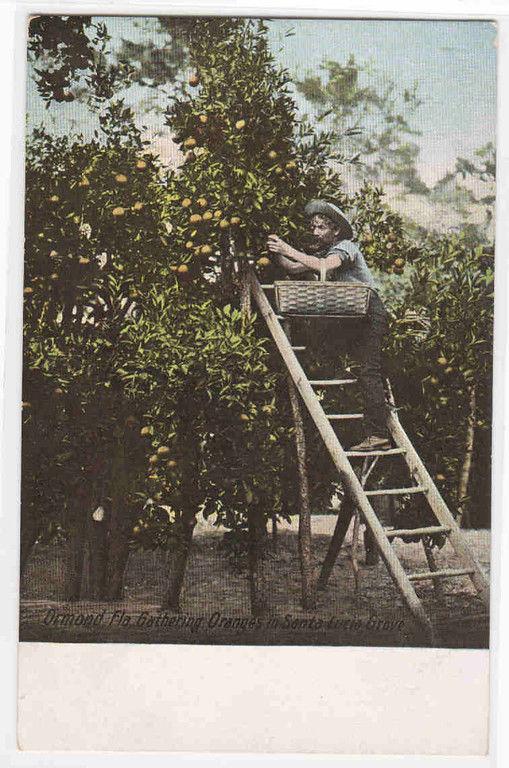 Orange Harvest Santa Lucia Grove Ormond Florida 1910c postcard