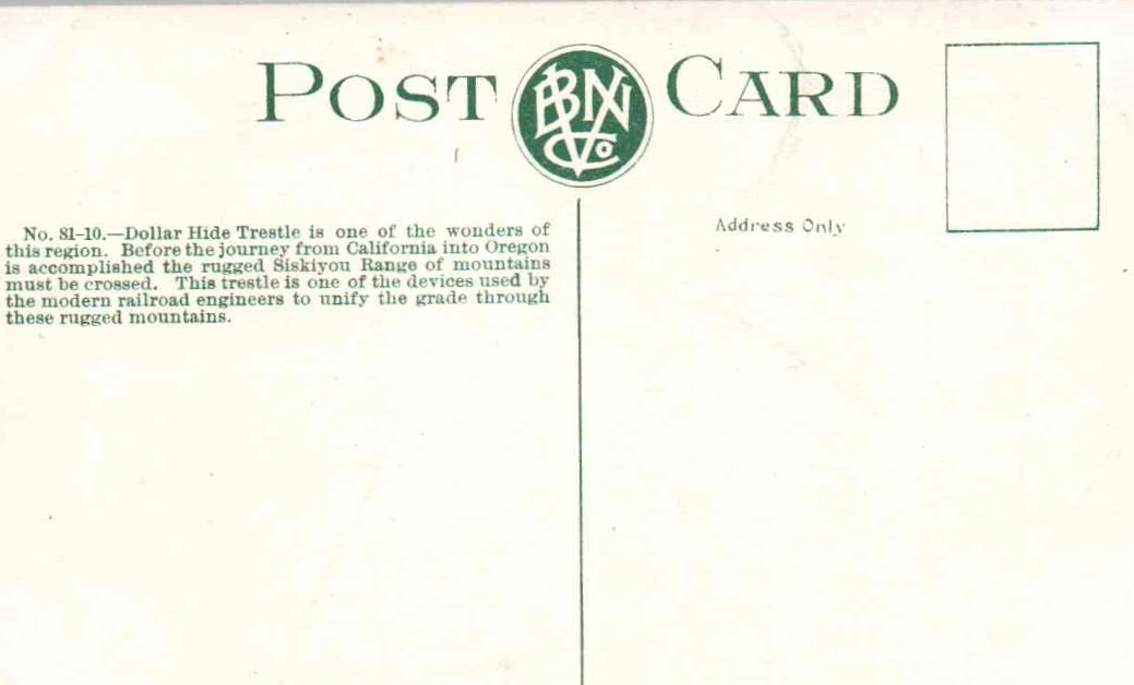 Oregon - The Dollar Hide Trestle in the Siskiyou Range - c1908