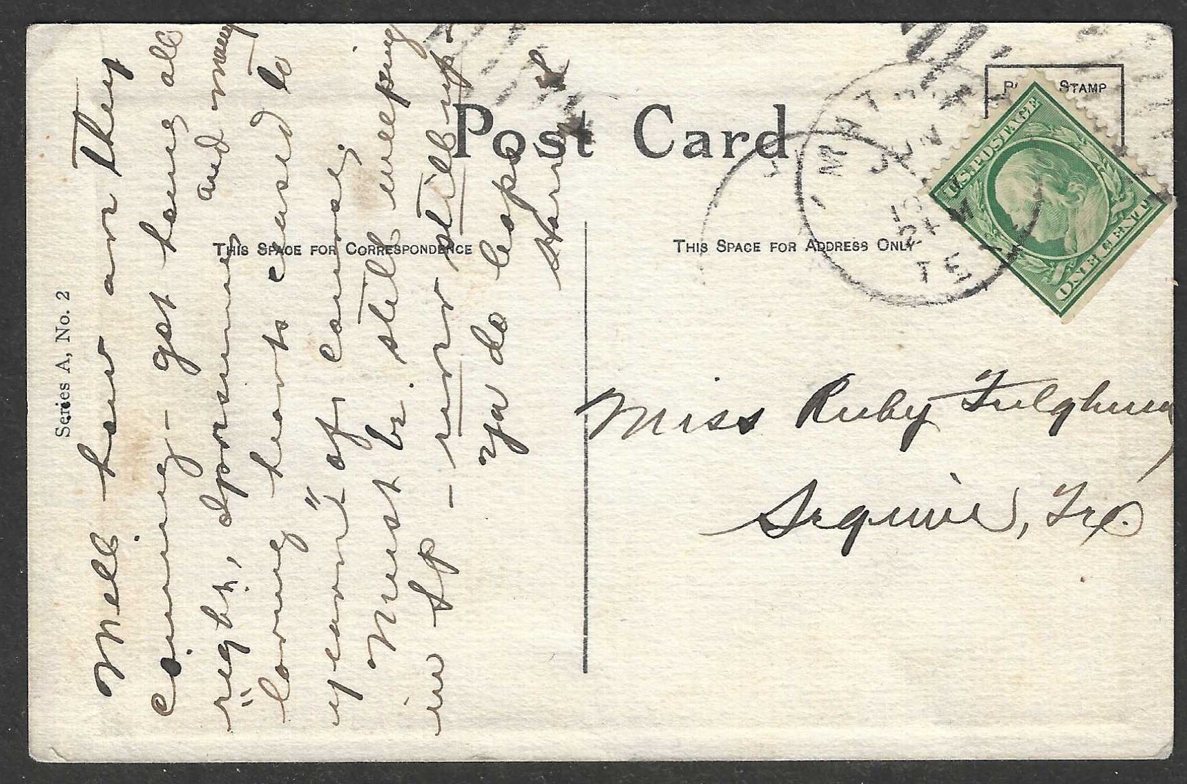 Postmarked in Texas with postage stamp intact. Card Number: Series A, No 2